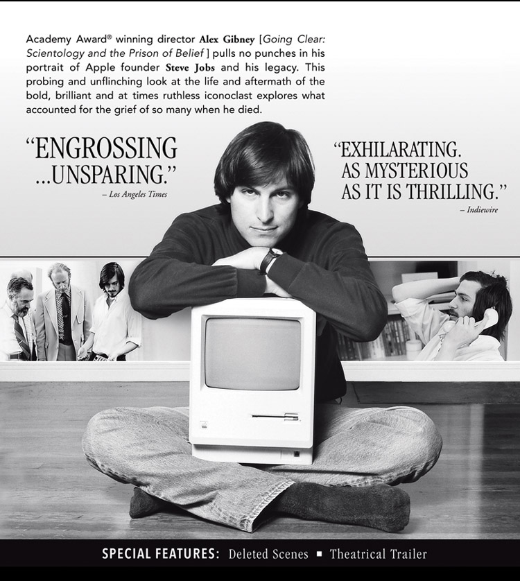 Academy Award®-winning director Alex Gibney [Going Clear: Scientology and the Prison of Belief] pulls no punches in his portrait of Apple founder Steve Jobs and his legacy. This probing and unflinching look at the life and aftermath of the bold, brilliant and at times ruthless iconoclast explores what accounted for the grief of so many when he died.
