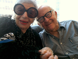 Iris Apfel and director Albert Maysles in IRIS, a Magnolia Pictures release. Photo courtesy of Magnolia Pictures.