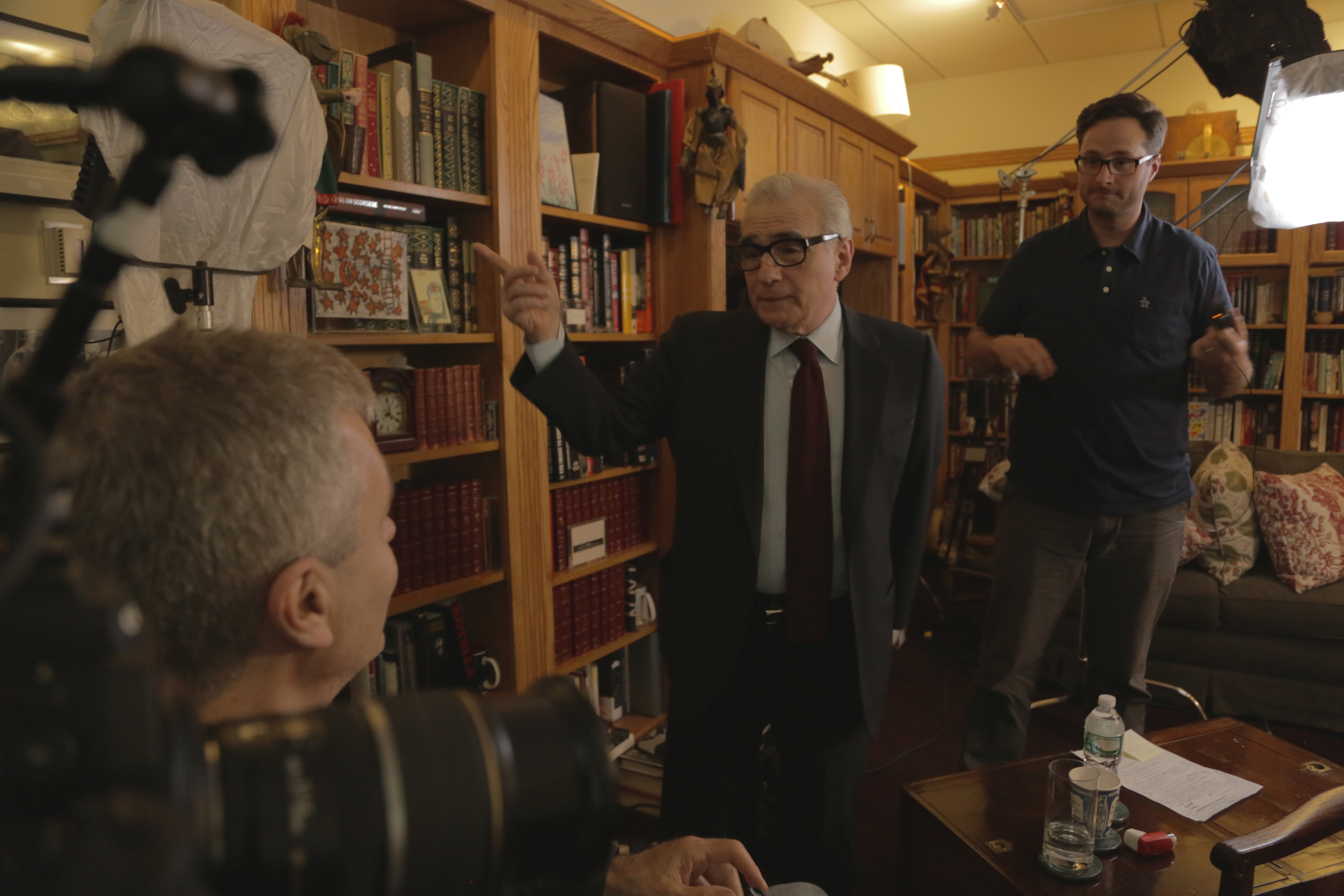 Martin Scorsese speaks to director Steve James on the set of LIFE ITSELF, a Magnolia Pictures release. Photo courtesy of Magnolia Pictures.