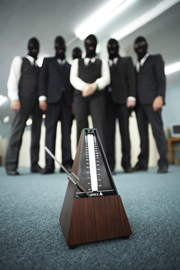 Six Drummers in a scene from SOUND OF NOISE, a Magnolia Pictures release. Photo courtesy of Magnolia Pictures. Photo credit: Nils Bergendal | |  Anders Vestergård, Johannes Björk, Sanna Persson Halapi, Fredrik Myhr, Magnus Börjeson, Marcus Haraldson Boij in SOUND OF NOISE, a Magnolia Pictures release. Photo courtesy of Magnolia Pictures. Photo credit: Nils Bergendal |