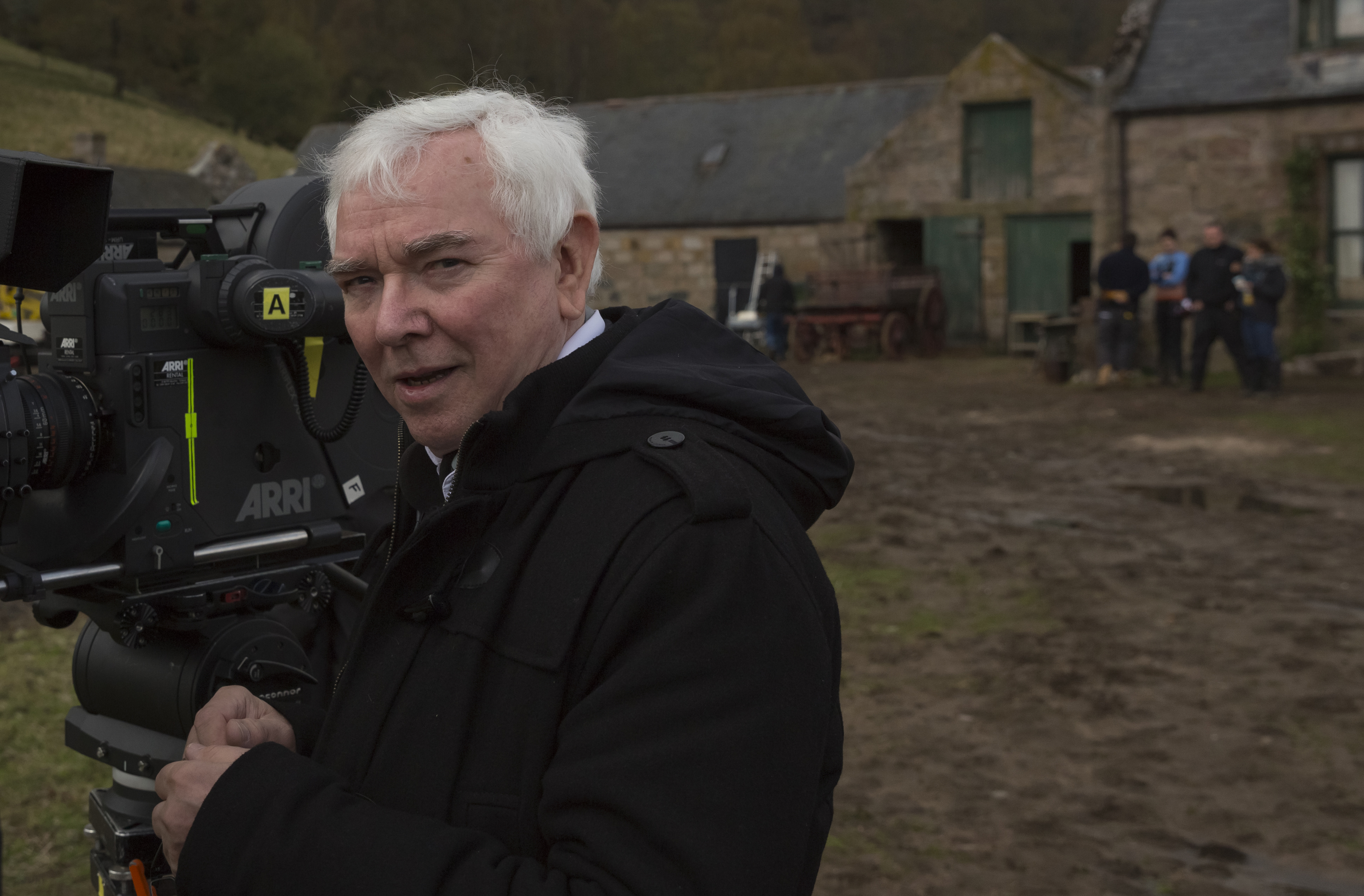 Agyness Deyn and Kevin Guthrie in SUNSET SONG, a Magnolia Pictures release. Photo courtesy of Magnolia Pictures. | |  Director Terrence Davies on the set of SUNSET SONG, a Magnolia Pictures release. Photo courtesy of Magnolia Pictures. |