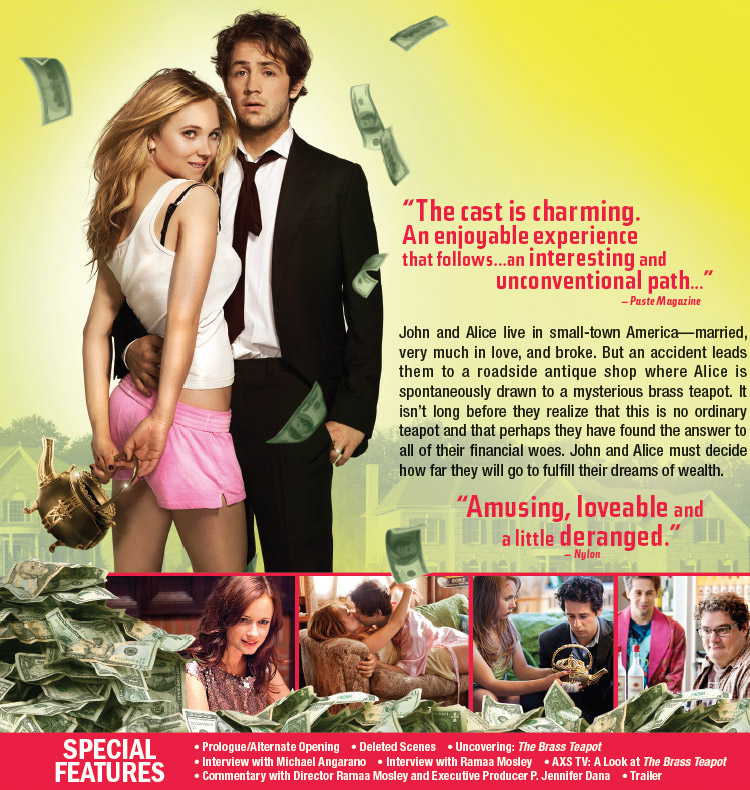 John and Alice live in small-town America—married, very much in love, and broke. But an accident leads them to a roadside antique shop where Alice is spontaneously drawn to a mysterious brass teapot. It isn’t long before they realize that this is no ordinary teapot and that perhaps they have found the answer to all of their financial woes. John and Alice must decide how far they will go to fulfill their dreams of wealth.
